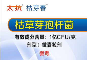 太抗系列生物農(nóng)藥介紹——枯芽春篇發(fā)布日期:2016.03.02點(diǎn)擊量:8593一、產(chǎn)品特點(diǎn)特點(diǎn):我國(guó)唯一正式登記為微膠囊劑的生物殺菌劑,重點(diǎn)用于土傳病害防治,尤其是對(duì)枯萎病防治,促進(jìn)根系生長(zhǎng);食品安全性:毒性低于食鹽,有機(jī)認(rèn)證在辦理中;農(nóng)作物安全:對(duì)作物安全無(wú)藥害。 二、枯草芽孢桿... -
