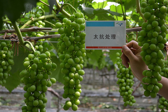 莊園牧歌陳總對(duì)太抗系列產(chǎn)品的效果給予了充分肯定:第一、與進(jìn)口化學(xué)殺菌劑效果相當(dāng);第二、性?xún)r(jià)比高,藥效持效期長(zhǎng);第三、植株長(zhǎng)勢(shì)健壯、葉片濃綠厚實(shí);第四、促進(jìn)葡萄生長(zhǎng),提前著色,可以使葡萄提早上市。陳總說(shuō)“我們國(guó)人自己生產(chǎn)的太抗生物農(nóng)藥既然有這么好的效果,性?xún)r(jià)比高,又安全,我肯定支持國(guó)產(chǎn)噻”,這是對(duì)我們太抗最大的肯定與鼓舞!